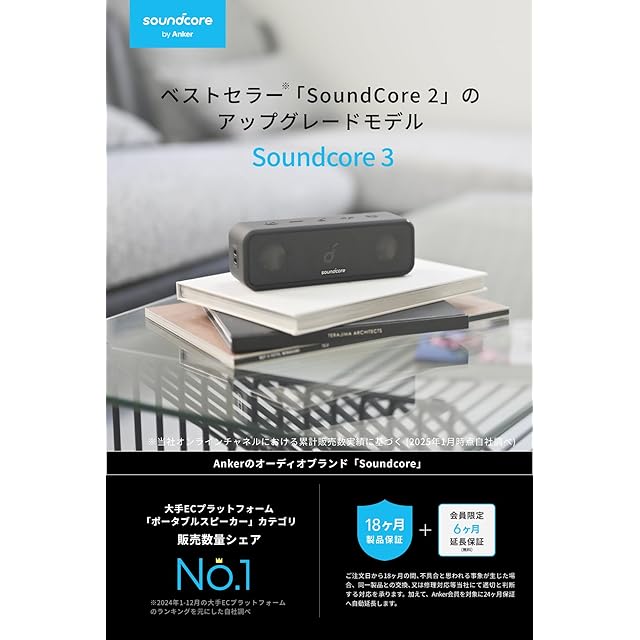 Anker Soundcore 3 Bluetooth スピーカー/ IPX7 防水/チタニウムドライバー/デュアルパッシブラジエーター/BassUpテクノロジー/アプリ対応/イコライザー設定/USB-C接続/ 24時間連続再生/ PartyCast機能/お風呂で使用可能/プレゼントやギフトに最適/ブラック | TREND DESIGN 家電専門店
