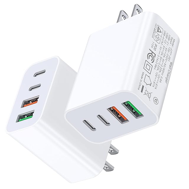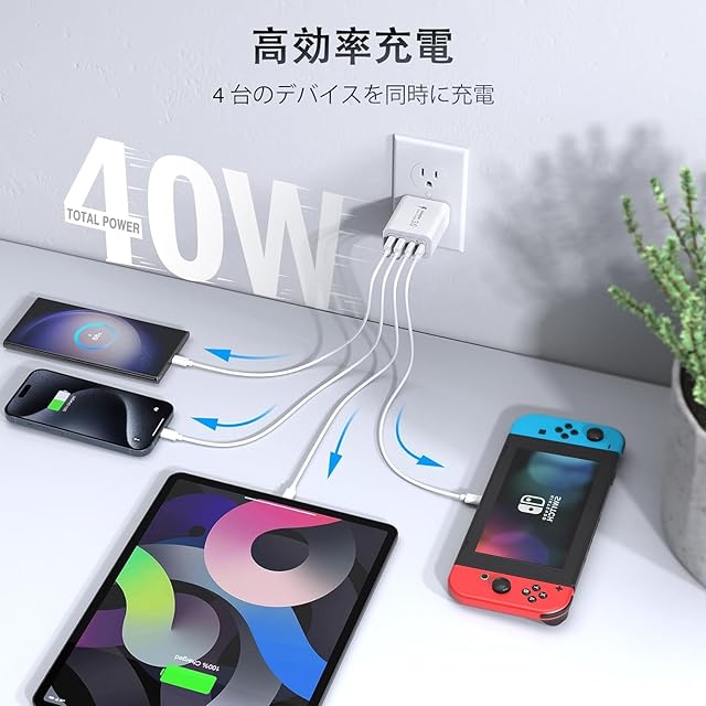 ⚡【マルチポートUSBコンセント】:タイプc 充電器は、デュアル USB-C ポートとデュアル USB-A ポートがあります。ユーザーは電話、タブレット、ヘッドフォンを同時に充電して、待ち時間を最小限に抑えることができます。また、4 つの壁コンセント ポートを占有する代わりに、スペースを節約できます。元の USB 充電器の最高の代替品です。
