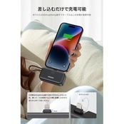【Lightningコネクター&USB-Cケーブル】ライトニングコネクター、Type-Cケーブル、USB-Cポートを備え、最大3台のデバイスを同時に充電できます。折りたたみ式のLightning端子デザインで使用時にはまったく邪魔になりません。※本製品のLightning端子は長さが5mmしかないため、厚いケースを使用すると充電に影響しますので、あらかじめご了承ください。