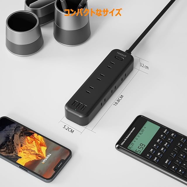 電源タップ ブラック usb 延長コード 2m たこあしコンセント テーブルタップ 9個AC口 3個タイプAポート TESSAN 電源コード タコ足配線 OA 一括スイッチ付き | TREND DESIGN 家電専門店