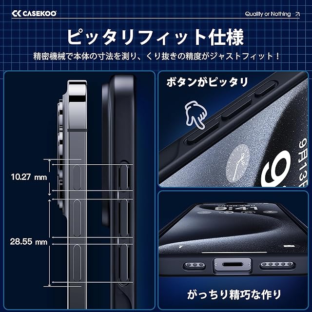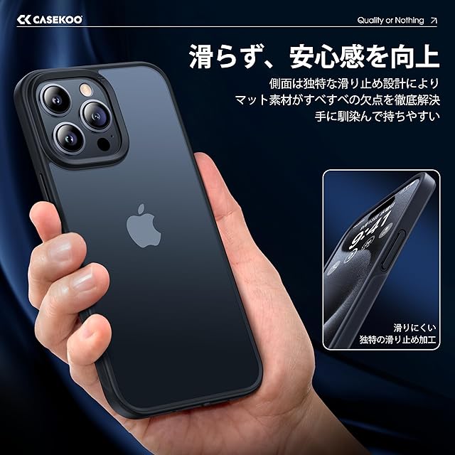 商品名:【米軍MIL規格・指紋防止】CASEKOO iPhone 15 Pro 用 ケース 耐衝撃 滑り止め 指紋防止 米軍MIL規格 マット仕上げ ストラップホール付き 黄変防止 耐久性 カバー ワイヤレス充電対応 アイフォン 15 プロ 用 6.1 インチ ケース(マットブラック)