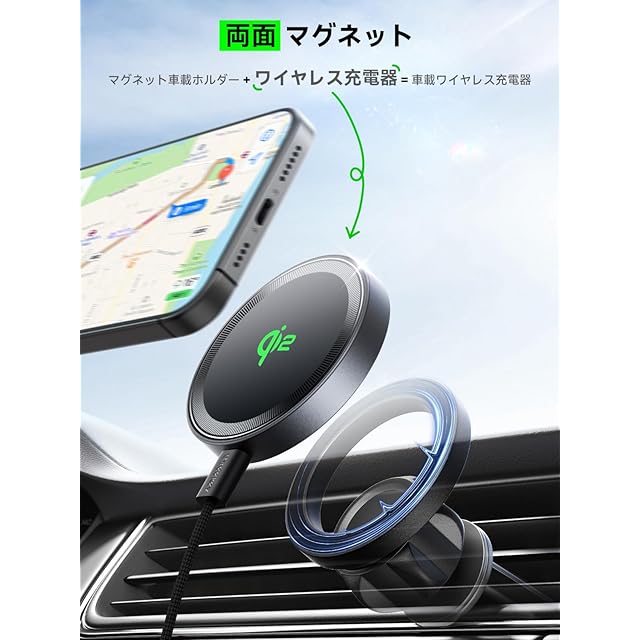 【両面マグネット · 多様なシーンで使用可能】THREEKEYのワイヤレスチャージャーは「両面マグネット設計」を採用しており、片面はマグネットで充電でき、もう一面はマグネットホルダーと組み合わせて多様なシーンで使用できます。たとえば、デスクのマグネットホルダーと組み合わせると、充電しながらビデオ通話や映画、テレビドラマを楽しむことができます。また、車載マグネットホルダーと組み合わせると、充電しながらナビゲーションが可能です。あなたにより便利で楽しいライフスタイルを体験してください。