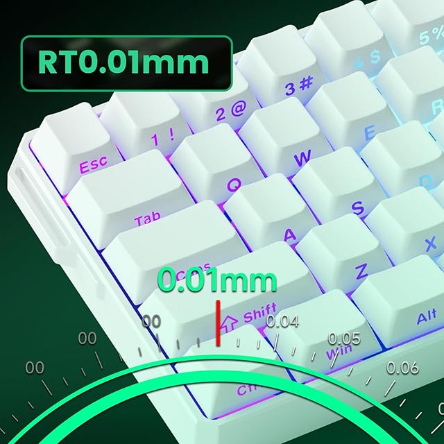 【日本正規代理店品】<br> 日本国内正規有り<br> <br> 新世代のラビットトリガー対応キーボード<br> <br> ■ 主流の磁気スイッチとホットスワップが可能<br> ■ ラピッドトリガー 0.01~2.00mmまで調整可能<br> ■ Arm Cortex-M4 CPUでパフォーマンスの高速化の実現<br> ■ 500Hzリフレッシュレートに対応したARGB<br> ■ PBT サイドプリント シャインスルー キーキャップ<br> ■ 8000Hzポーリングレート<br> ■ Akko Glare Magnetic Switchを搭載 安定性とより良い打鍵音<br> ■ Snap Keys (SOCD)機能搭載<br> ■ ダイナミックキーストローク(DKS)搭載<br> ■ モッドタップ<br> ■ アルミニウムボディ<br> ■ ソフトウェア/Webドライバーで様々な設定が可能<br> <br> マウント:トレイマウント<br> ケース素材:アルミニウム<br> 接続方式:USB-C有線<br> LED:ARGB<br> 磁気スイッチの相互互換性:Yes<br> RTスタビライザー:Yes<br> RT精度:0.01-2.00mm<br> アクチュエーション範囲(mm):0.1-3.4mm<br> センサー:HE<br> キー数:61<br> キーキャップ:PBT サイドプリント シャインスルー<br> ポーリングレート:8000Hz<br> LED向き:南向きのLED<br> プレート:アルミニウム<br> 主な特徴:カスタムアクチュエーション/Mod-Tap/トグルキー/ダイナミックキーストローク/キーリマッピング/カスタマイズ可能なRGB/SOCD<br> スタビライザー:事前に潤滑されたプレートに取り付けられたスタビライザー<br> 高さ調整:3段階調整可能<br> ソフトウェア:MonsGeekドライバーとWebベースのドライバー<br> サイズ:295*102.5*28.5mm<br> 重量:944g<br> <br> スイッチ仕様<br> スイッチ:Akko Glare Magnetic Switch<br> 入力方式:ホールエフェクトマグネティックスイッチ<br> ラピッドトリガー:0.01 ~ 2.00mm<br> アクチュエーションポイント:0.1 ~ 3.4mm<br> キーストローク:3.4mm<br> キー荷重(初期):25g<br> キー荷重(2.0mm):40g<br> キー荷重(底打ち):48g<br> キーフィーリング:リニア<br> <br> 内容物:<br> キーボード本体×1<br> USB-C to A ケーブル×1<br> キーキャップ交換工具×1<br> キースイッチ交換工具×1<br> 取り扱い説明書×1