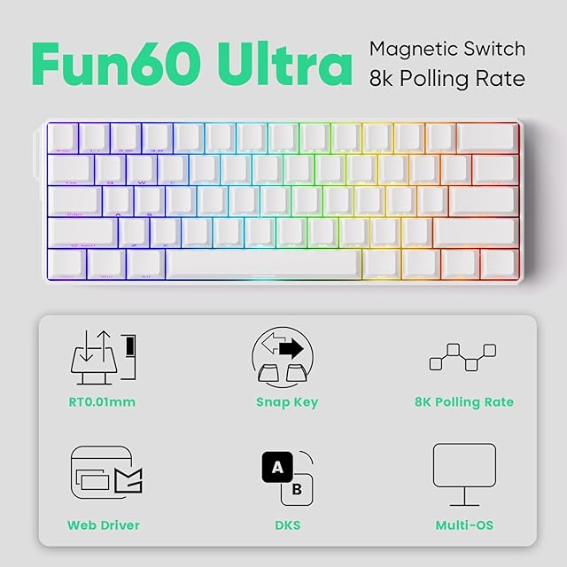 商品名:【国内正規品】MonsGeek(モンスギーク) FUN60 Ultra SP 有線モデル HEセンサー アルミボディ 0.01mm ラピッドトリガー対応 磁気スイッチ Akko Glare Magnetic Switch 英語配列 テンキーレス サイドプリント 有線8K ホットスワップ SnapKeys (SOCD)対応 ARGB対応 高コスパ ゲーミングキーボード White