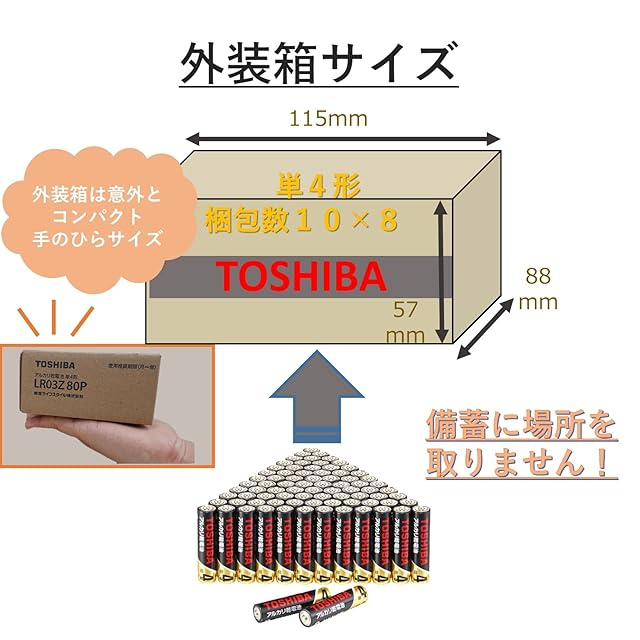 商品名:東芝(TOSHIBA) アルカリ乾電池 単4形 80本入 1.5V 使用推奨期限 10年保存 液漏れ防止構造 Zシリーズ LR03Z 80P