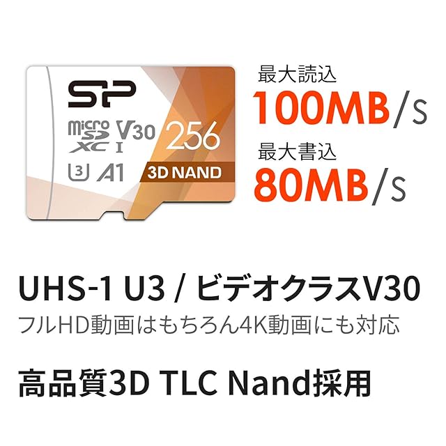 SP Silicon Power シリコンパワー microSD カード 256GB 【Nintendo Switch 動作確認済】4K対応 class10 UHS-1 U3 最大読込100MB/s 3D Nand SP256GBSTXDU3V20AB | TREND DESIGN 家電専門店