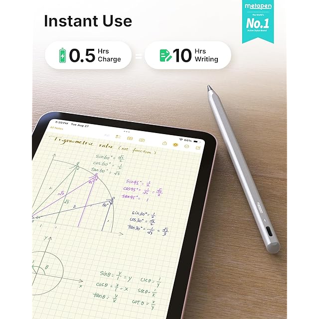 【Type-C高速充電& 長時間使用】Metapen iPad用 タッチペン A8は、充電1分で50分、充電4分で2時間使用できます。30分間フル充電でき、10時間連続使用可能になります。5分間静置し、スマートに電源を切り忘れないようにし、電力を節約します。Metapen A8の高速充電とバッテリー寿命を楽しんでください、バッテリー切れの心配はありません!