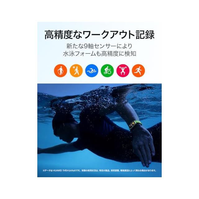 【豊富なワークアウトと精確な測定】 100種類のワークアウトモードを搭載。ウォーキングとランニングのワークアウトは、自動識別機能にも対応。HUAWEI Healthアプリと一緒に使用することで、スマートランニングプログラムのカスタマイズも可能です。特に水泳では、高精度な9軸センサーとAIを使用したアルゴリズムと組み合わせることで高精度の水泳データを提供します。