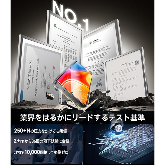 【米軍MIL規格越え・隅々まで全面保護】Galaxy S25 Ultra用フィルムに組み込まれたNa+/K+イオン交換、SCL緩衝層などの30つ以上の革命的な加工技術で、表面に圧縮応力層を発生させ、耐衝撃性が20倍に上がった。1200℃焼き戻し二次強化技術で作られた縁は端をしっかりと守り、2m落下実測(各方向で合計36回)で、どんな角度から落ちてもフチ割れの心配はご無用。※米軍「MIL-STD-810G」規格認証番号:GZMR220300626209|認証機関:CSTC Standards Testing Center|Mar 28, 2022