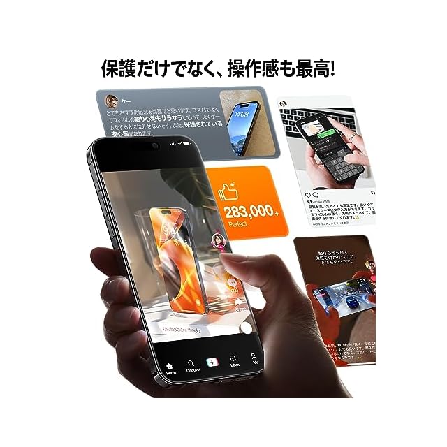 【指紋防止・指滑りが超スムーズ】ハスの葉を模倣したAF(Anti-Fingerprint)コーティングを駆使し、強力な撥水撥油性および耐指紋機能を備えたナノ化学物質層が形成されています。ゲームもタイピングも滑らかで、防汚性能は最高レベルになります。常に鮮烈な視覚体験や極上な使用体験をお楽しみいただけます。これまでに283,000人以上のお客様から絶賛をいただいています。