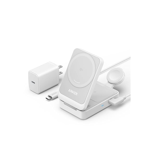 Anker MagGo Wireless Charging Station (Foldable 3-in-1) Qi2対応 マグネット式 3-in-1 ワイヤレス充電ステーション/ワイヤレス出力/Apple Watchホルダー付 MagSafe対応 iPhone 16 / 16 Pro / 16 Pro Max / 15 / 14 / 13 ホワイト | TREND DESIGN 家電専門店