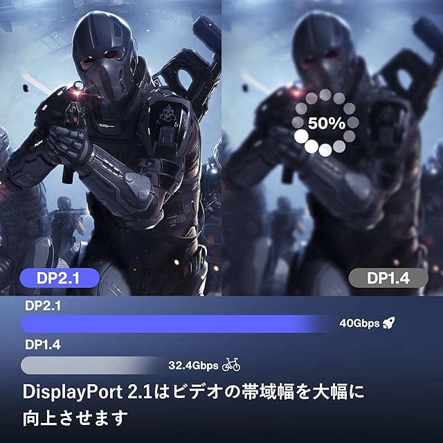 【40Gbps 高速伝送】:このDP - DP 2.1 ケーブルは40Gbpsの帯域幅をサポートします。信号損失のない安定した高速伝送を実現できます。1本のケーブルでディスプレイポートを搭載したPCをHDTV、モニター、ゲーム用グラフィックスカードに接続し、クリアなオーディオと高精細ビデオを伝送します。注:DP 1.2およびDP 1.4規格と下位互換性があります。