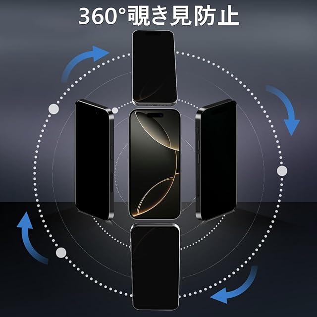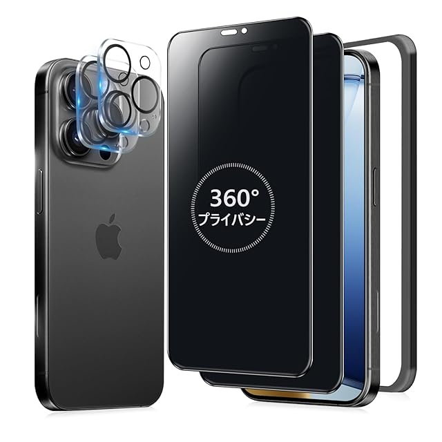 【360度 / 2枚セット】 iPhone16 Pro max ガラスフィルム 覗き見防止 360 アイフォン16プロマックス 保護フィルム 360° 全方向 覗き見 いPhone16Pro max フィルム 上下左右 iPhone 16Promax 用 覗き見防止フィルム 画面保護 覗き見防止フィルター 【 iPhone16Pro max カメラフィルム 付き 】