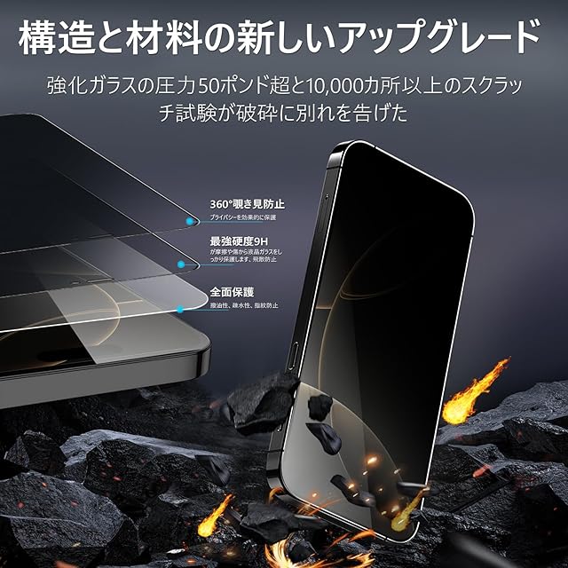 商品名:【360度 / 2枚セット】 iPhone16 Pro max ガラスフィルム 覗き見防止 360 アイフォン16プロマックス 保護フィルム 360° 全方向 覗き見 いPhone16Pro max フィルム 上下左右 iPhone 16Promax 用 覗き見防止フィルム 画面保護 覗き見防止フィルター 【 iPhone16Pro max カメラフィルム 付き 】