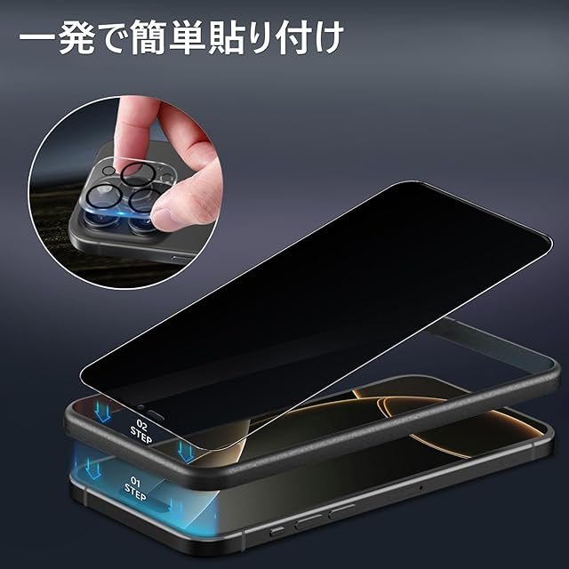【ガイド枠付き,初心者でも綺麗に貼れる】 ガイド枠をはめる→上側に合わせて、フィルムを置く→軽く押すだけで自然に吸着。初めての方でも簡単に貼り付けられるよう、専用の貼り付けガイド枠を同梱しています。いPhone16Pro max ガラスフィルムがズレることなく、だれでも簡単にフィルムを貼ることができます。