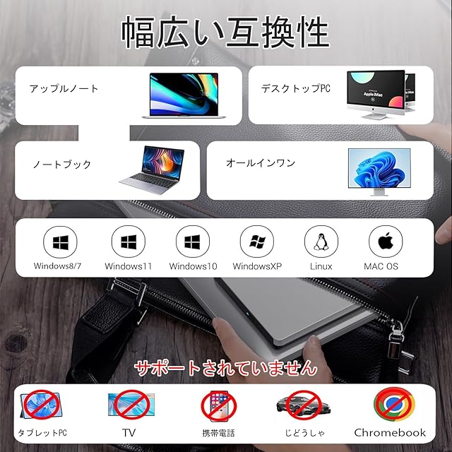 【ご注意】:ブルーレイドライブには書き込み・再生ソフトが付属していないため、別途購入が必要です。また、車、Chrome、テレビ、BDレコーダー、タブレット、Surface/MACタブレット、プロジェクター、スマートフォンでのブルーレイ再生には対応しておりません。十分な電力供給のため、USBハブや延長ケーブルの使用は避けてください。ご注意:十分電力供給を確保するために、USBハブ と USB コネクタをご利用しないでください。
