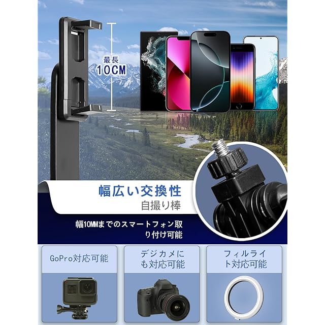 商品名:スマホ 三脚 自撮り棒 長い 180cm以上 スマホスタンド 【設計強化180cm & 充電式リモコン】1/4ネジ付き じどり棒 カメラ 一脚/ 三脚 360°回転 コンパクト iPhone&Androidに対応 【日本語取扱説明書付き】