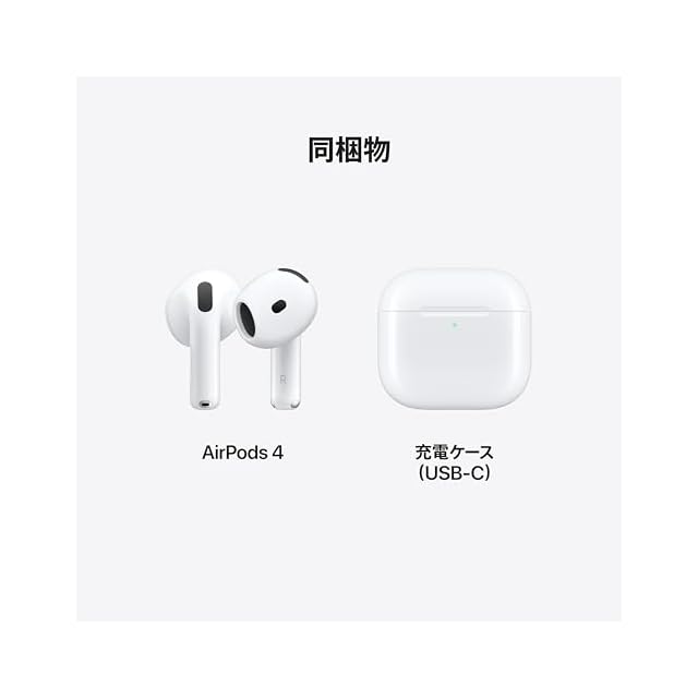 商品名:Apple AirPods 4 ワイヤレスイヤホン、Bluetooth5.3、パーソナライズされた空間オーディオ、耐汗耐水性能、USB-C 充電ケース、H2 チップ、最大 30 時間の バッテリー駆動時間、iPhoneで簡単に設定