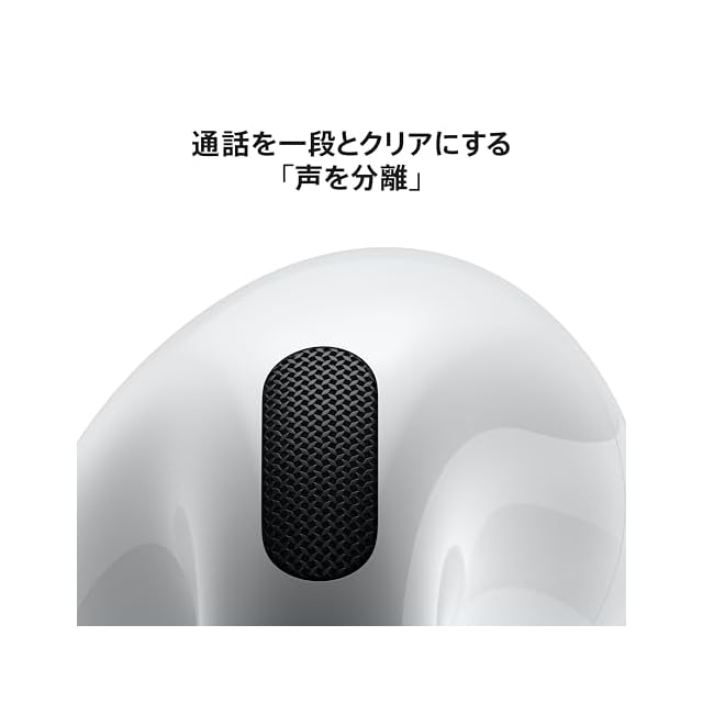 さらに優れた音質と通話品質 AirPods 4 は Apple 製の H2 チップを搭載。「声を分 離」機能は、雑音の大きい場所での通話品質を向上させます。先進的なコンピュテーシ ョナルオーディオを活用して、周囲の雑音を低減。あなたの声を分離して、クリアな音 声にしながら通話の相手に届けます*。