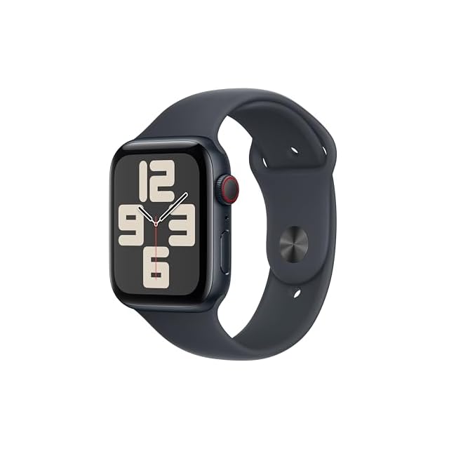Apple Watch SE (第 2 世代) [GPS + Cellular (44mm)ケース用] アルミニウムケースとミッドナイト スポーツバンドを組み合わせたスマートウォッチ。フィットネストラッカーと睡眠ト ラッカー、衝突事故検出、心拍数のモニタリング、Retina ディスプレイ、耐水性能