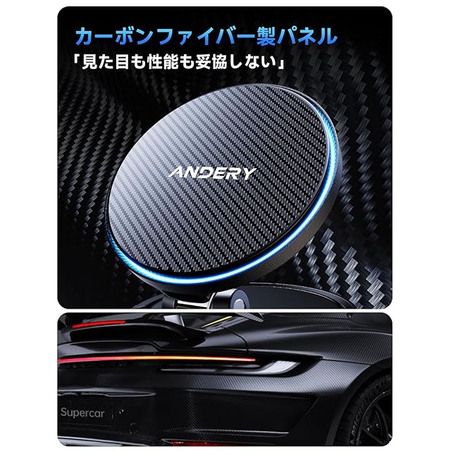 【高級炭素繊維デザイン&0.1秒瞬間吸着&幅広い互換性】ANDERYの車載スマホホルダーは、BMWやメルセデスなど高級車と同等の製造技術を採用したスーパーカー仕様の本格炭素繊維デザイン。3D立体編み込みの滑り止め加工でスマートフォンを確実に固定し、20,000回の耐摩耗テストをクリアした耐久性で、傷や腐食に強く長期間使用しても新品同様の美しさを維持します。従来の車 携帯スタンドとは異なり、スマホを近づけるだけで簡単に固定可能。片手で素早く取り付け・取り外しができ、操作が非常にシンプルです。99%の車種に対応しています。 車内だけでなく、自宅やオフィスなど携帯スタンドがある場所でも使用できるスマホ 車載ホルダーです。対応機種は非常に幅広く、99%のスマートフォンに対応:iPhone 12/13/14/15/16シリーズや公式認定MagSafeケースはそのまま吸着可能です。他の機種(Android/Galaxy S25/Xperia 1 VII/Pixel 8など)でも、金属リングを装着するだけで使用できます。多機能性と便利さを兼ね備えたこのカー用品 ホルダーで、日常をもっと快適に!