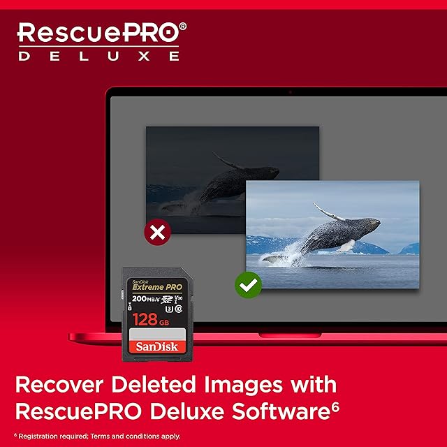 SanDisk QuickFlowテクノロジーを搭載した最大200MB/秒のカードオフロード速度で時間を節約。(最大200MB/秒の読み取り速度。UHS-I 104MB/秒を超える速度に達する独自の技術で設計されています。そのような速度に達することができる互換性のあるデバイスが必要です。 内部試験に基づいています。ホストデバイス、インターフェース、使用状況などの要因によってパフォーマンスが低下する場合があります。 1MB (メガバイト) =100万バイト。 X = 150KB/秒。 SanDisk QuickFlowテクノロジーは、64GB、128GB、256GB、512GB、1TBの容量のみで利用できます。 1GB (ギガバイト) = 10億バイト。 1TB (テラバイト) = 1兆バイト。 実際にユーザーが使用できるストレージ容量はこれより少なくなります。)