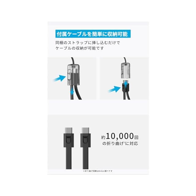 耐久性に優れたケーブル:付属ケーブルは約10,000回の折り曲げにも耐えられる高耐久設計。(Anker調べ)