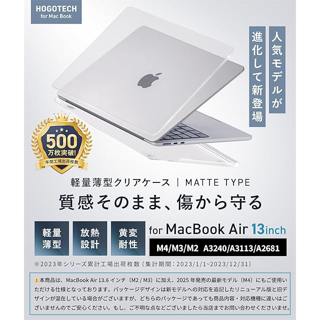 2025 M4対応【質感そのまま、傷を守る】MacBook Air 13インチ M3 / M2 ケース 2024 2022 カバー クリアマットカバー A3240 A3113 A2681 HOGOTECH | TREND DESIGN 家電専門店