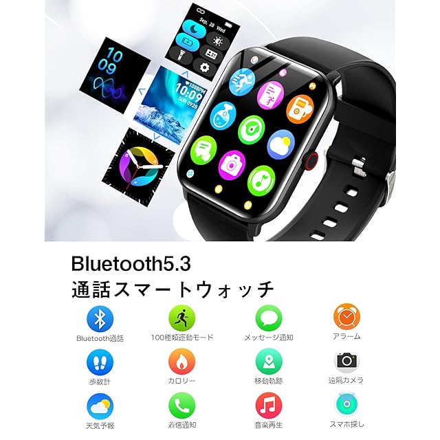 商品名:スマートウォッチ【2025年新開発・プロ推奨モデル】スマート ウォッチ iPhone対応 アンドロイド対応 Bluetooth5.3 通話機能付き 1.9インチ大画面 活動量計 腕時計 100種類運動モード 着信/メッセージ通知 文字盤切替 音楽再生 スポーツウォッチ 天気予報 防水 長持ちバッテリー 薄型 軽量 ギフト(ブラック)