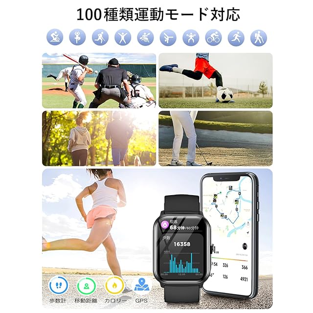 ☪【活動量計・24時間運動&健康追跡】スマートウォッチに多種類運動モードが付き、活動量計として役に立ちます。ランニング、自転車、水泳、テニスなどを自由に選択することができ、消費カロリーや運動追跡、距離、歩数などのデータを記録し、合理的に運動量を管理することができます。運動と健康を測定する3つの専門センサーを内蔵され、健康状況をリアルタイムで記録できます。夜間の睡眠データを自動的に記録し、浅い睡眠時間と深い睡眠時間の状態を記録することで、毎晩の睡眠の質を把握します。