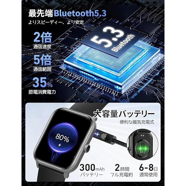 ☪【Bluetooth5.3・通話可能】スマートウォッチ には高性能スピーカーとマイクが内蔵され、ペアリングするだけで通話することができます。運動中や仕事中にも携帯電話を出す必要がありません。また、緊急事情がある時には、緊急連絡も実現できます。最新世代のBluetooth5.3を採用して、通信範囲・接続の安定性が飛躍的に向上しました。通話品質もクリアで快適、音声も明瞭で相手の声がしっかり聞こえます。