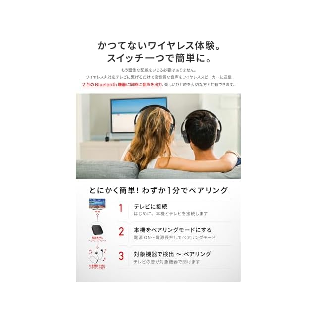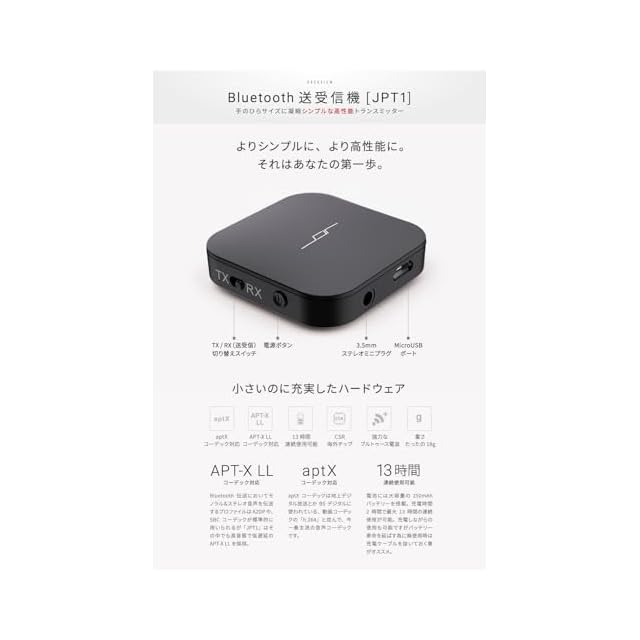 ✅【 ワイヤレス非対応機器を カンタンに ワイヤレス化 】 面倒な配線をいじくらなくても、ワイヤレス接続に対応していない機器をワイヤレスで使用できます。低レイテンシーで音声遅延を極限まで抑えた APT-X, APT-X LL コーデック対応の高音質をお楽しみ下さい。【 万全のトラブルシュート・サポート】特定の相手機器との接続など、ご購入後のご使用に関するお困りごとについても丁寧にサポートいたします。JPRiDE カスタマーサポートまでご連絡ください。 (*)非対応機器:Wi-Fi、光デジタル、S/P DIF 端子 等は非対応です。また、Apple AirPods Pro(第2世代)との接続では、不具合が発生する可能性があります。