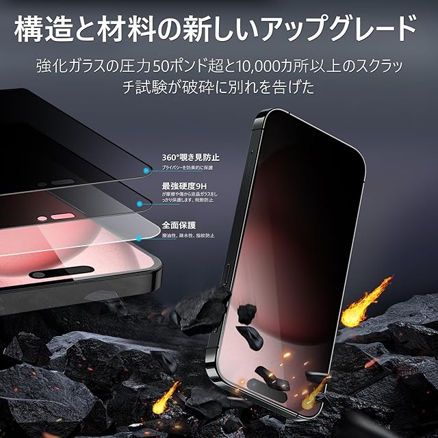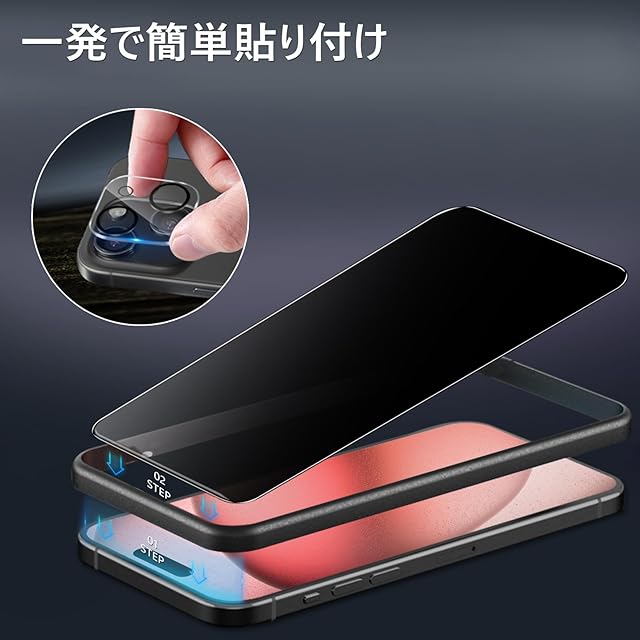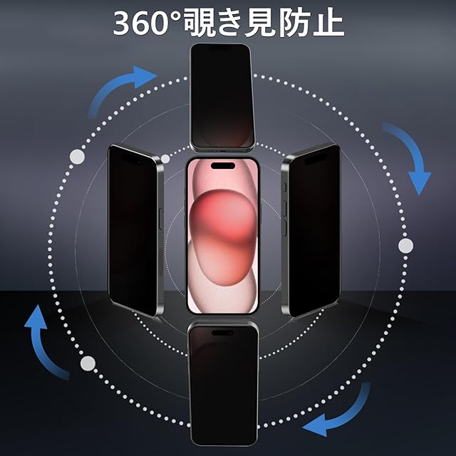 商品名:【360度 / 2枚セット】 iPhone 15 ガラスフィルム 覗き見防止 360 アイフォン15 保護フィルム 360° 全方向 覗き見 いPhone15 フィルム 上下左右 iPhone15 用 覗き見防止フィルム 画面保護 覗き見防止フィルター 【 iPhone15 カメラフィルム 付き 】