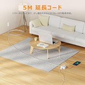 【5M延長コード付き】本体サイズ7.8x5.2x3.7cm(重量435g)。5mの超長コードで、部屋のレイアウトを制限されず自由に配置可能。お部屋のコンセントから離れた場所でも電源を確保して電気機器を使用できます。