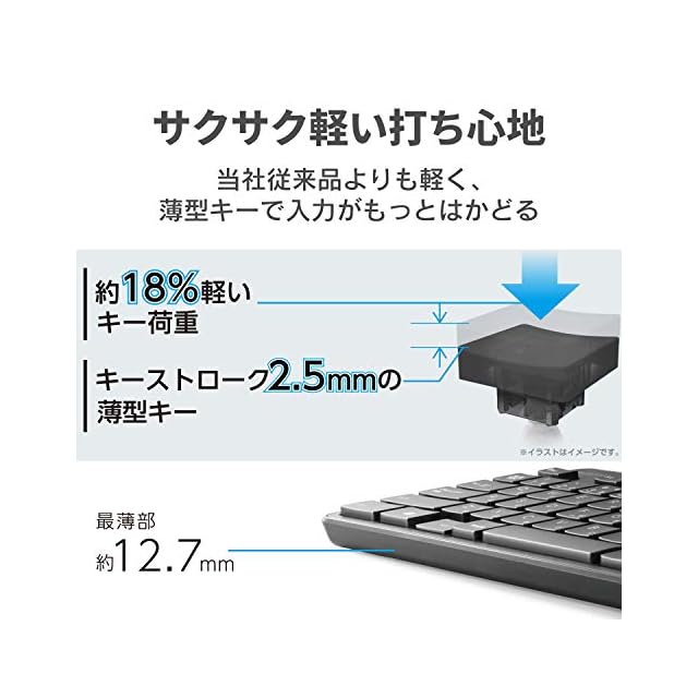 サクサクと軽い打ち心地を実現したキー設計を採用した薄型キーボードです。