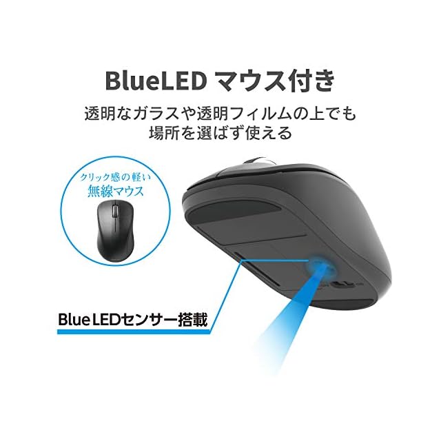 左右対称で持ち方を選ばないシンメトリーデザインを採用した無線マウスが付いています。
