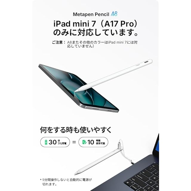 商品名:Metapen A8 iPad ペンシル 2018年~2025年iPad対応 ホワイト