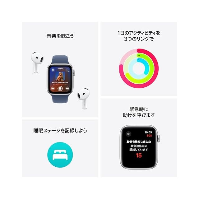 Apple Watch SE を選ぶ理由 アクティブに過ごしながらモチベーションをキープす る。いつもつながる。健康状態を記録する。安全を守る。そのために欠かせない機能を すべて搭載。watchOS 11 の登場で、より賢く、よりあなたらしく、よりつながれるデ バイスに。転倒検出や強化されたワークアウトの計測方法なども使える Apple Watch SE は、たくさんの魅力を、これまで以上にたくさんの腕に届けます。