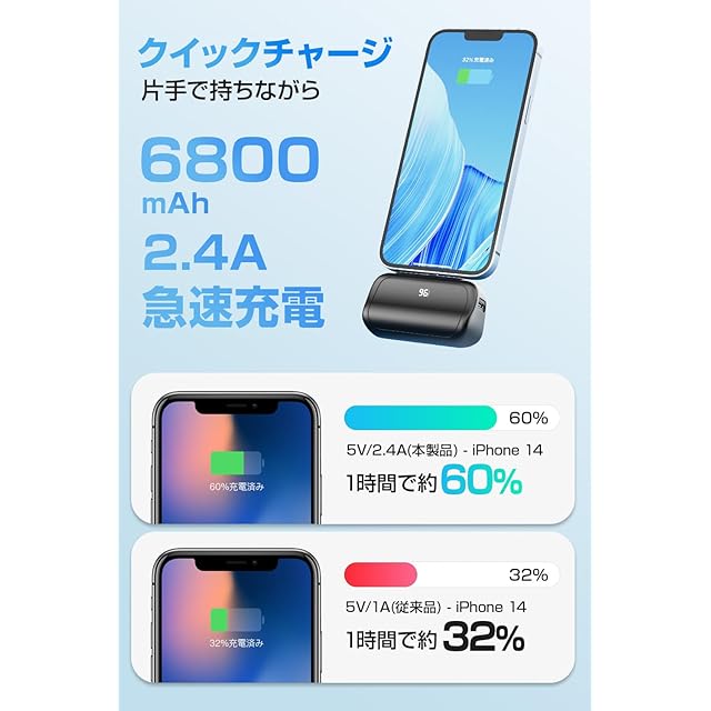 商品名:【新登場】 モバイルバッテリー 6800mAh 軽量 約100g 小型 MFi正規認証 Lightningコネクター & タイプCケーブル内蔵 Type-Cポート出入力 2台同時充電 携帯充電器 スマホ充電器 2.4A 急速充電 コードレス 機内持ち込み可 旅行/出張/アウトドア/停電対策/防災 iPad/iPhone/Android各種スマホ対応PSE技術基準適合 (ホワイト)