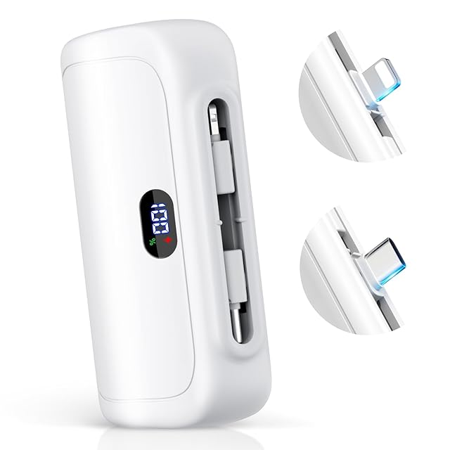 【新登場】 モバイルバッテリー 6800mAh 軽量 約100g 小型 MFi正規認証 Lightningコネクター & タイプCケーブル内蔵 Type-Cポート出入力 2台同時充電 携帯充電器 スマホ充電器 2.4A 急速充電 コードレス 機内持ち込み可 旅行/出張/アウトドア/停電対策/防災 iPad/iPhone/Android各種スマホ対応PSE技術基準適合 (ホワイト)