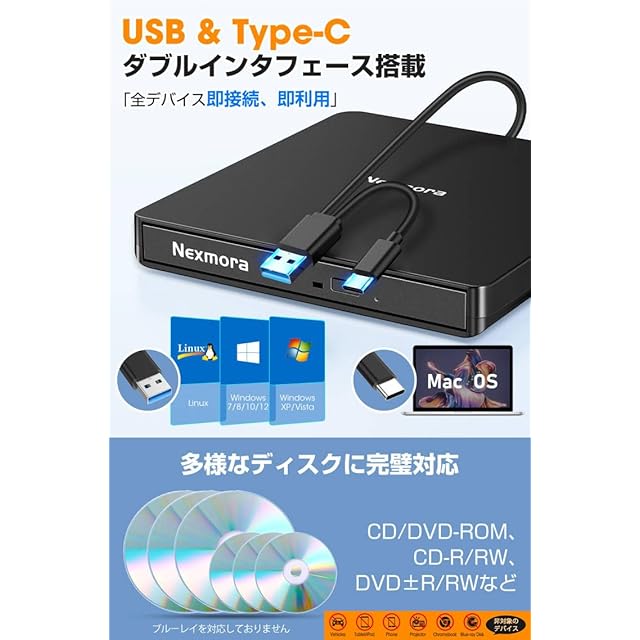 ✅【Windwos&Mac両対応・接続だけ使用開始】MacユーザーでもWindowsユーザーでも、この dvdプレーヤー は完璧に対応しています。Windows 11、Windows 10、Windows 8、Windows 7、Windows XP、Linuxなど、多様なOSに対応。USBとType-Cのダブルインターフェースで、さまざまなデバイスへの接続が簡単で、「即挿即使」の利便性を実現します。※Mac OS Xバージョン10.13以上では追加のドライバーが必要になる場合がありますので、購入前にご自身のシステムバージョンを確認して最適な互換性をすることをお勧めします。