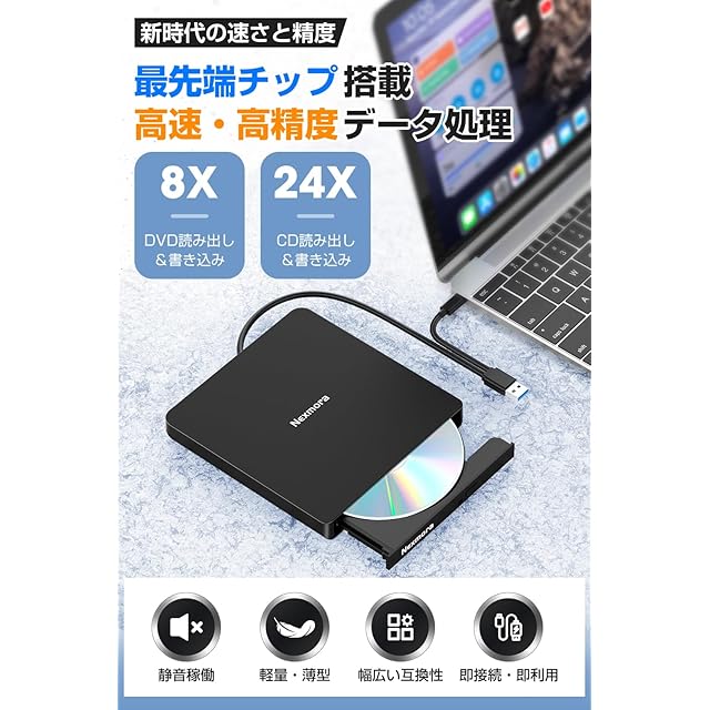 ✅ 【2024業界最先端チップ搭載】 当社の 外付け光学ドライブ は最先端チップを搭載し、高速かつ高精度なデータ処理を実現。USB3.0接続で、より高速で安定したデータ転送を提供し、待ち時間を大幅に短縮します。USB2.0と比較して、DVDおよびCDの読み書き速度が大幅に向上し、スムーズな使用体験をお届けできる 外付け cd/dvd ドライブ です。
