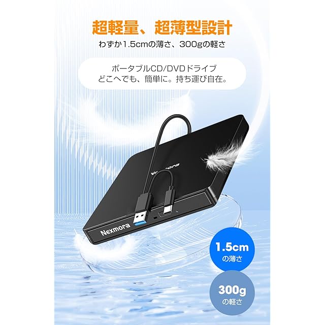 ✅【携帯便利・いつでもどこでも】:便利で機能的な光ドライブをお探しですか?当社の外付け光ドライブは携帯性と実用性を重視した設計。わずか1.5cmの厚さと300gの重量で、持ち運びが容易。家庭、オフィス、旅行先での使用に最適で、いつでもどこでも効率的なデータ処理を楽しめます。