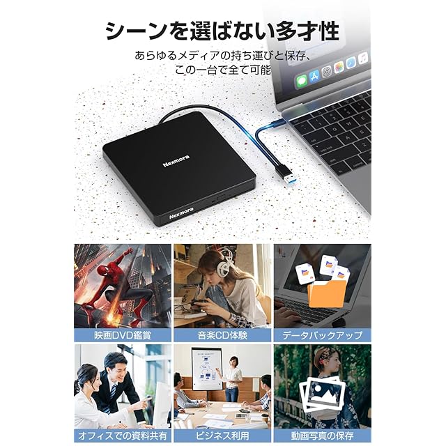 ✅【幅広いメディア対応】この 光学ドライブ は、様々なタイプのディスクに対応しています。CD/DVD-ROM、CD-R/RW、DVD±R/RWなど、安定した読み書き性能を提供します。M-DISC対応で、大切なデータの保存にも安心。その超薄型、超軽量設計で、携帯性に優れ、出張や旅行に最適な cdプレーヤー です。