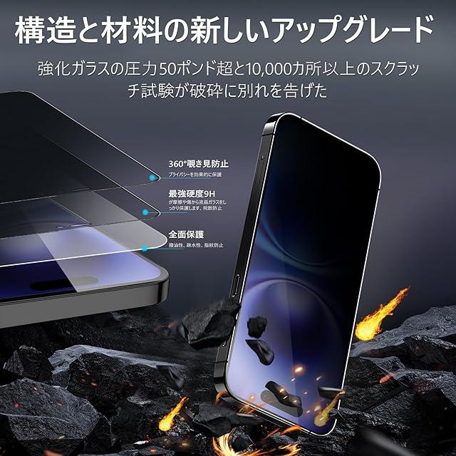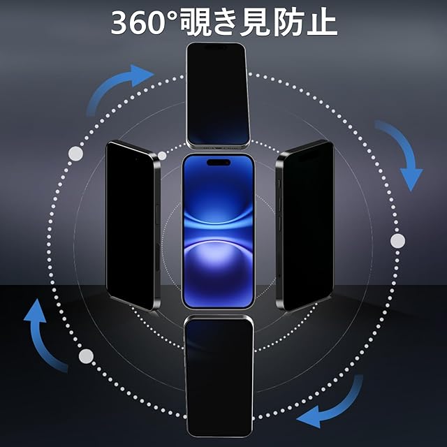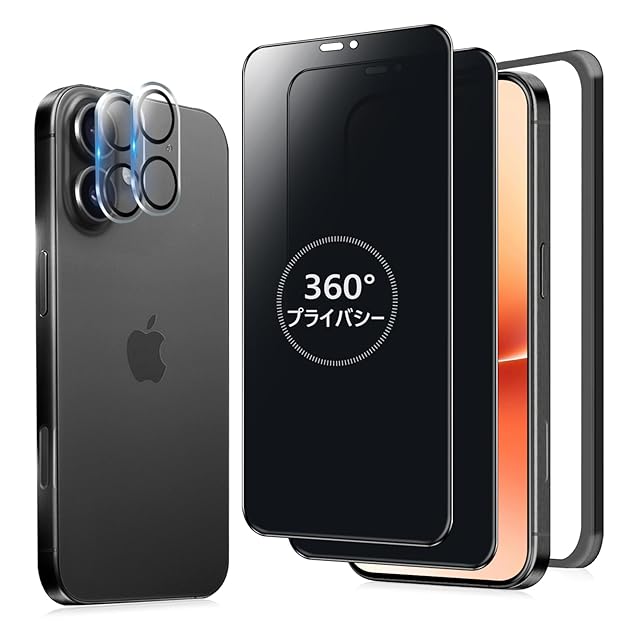 【360度 / 2枚セット】 iPhone 16 Plus ガラスフィルム 覗き見防止 360 アイフォン16プラス 保護フィルム 360° 全方向 覗き見 いPhone16 Plus フィルム 上下左右 iPhone 16Plus 用 覗き見防止フィルム 画面保護 覗き見防止フィルター 【 iPhone16Plus カメラフィルム 付き 】