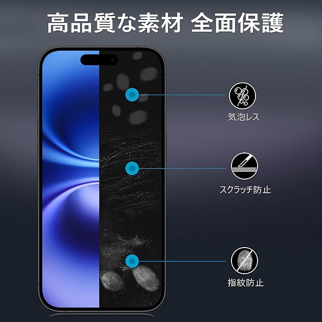 商品名:【360度 / 2枚セット】 iPhone 16 Plus ガラスフィルム 覗き見防止 360 アイフォン16プラス 保護フィルム 360° 全方向 覗き見 いPhone16 Plus フィルム 上下左右 iPhone 16Plus 用 覗き見防止フィルム 画面保護 覗き見防止フィルター 【 iPhone16Plus カメラフィルム 付き 】