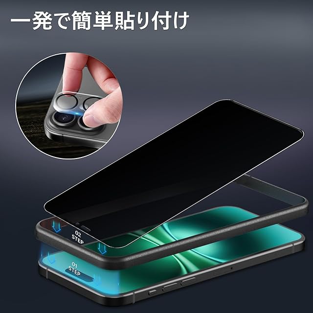 【360度 / 2枚セット】 iPhone 16 ガラスフィルム 覗き見防止 360 アイフォン16 保護フィルム 360° 全方向 覗き見 いPhone16 フィルム 上下左右 iPhone16 用 覗き見防止フィルム 画面保護 覗き見防止フィルター 【 iPhone16 カメラフィルム 付き 】