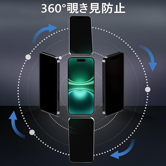商品名:【360度 / 2枚セット】 iPhone 16 ガラスフィルム 覗き見防止 360 アイフォン16 保護フィルム 360° 全方向 覗き見 いPhone16 フィルム 上下左右 iPhone16 用 覗き見防止フィルム 画面保護 覗き見防止フィルター 【 iPhone16 カメラフィルム 付き 】