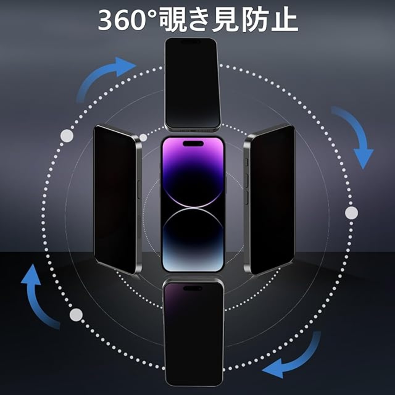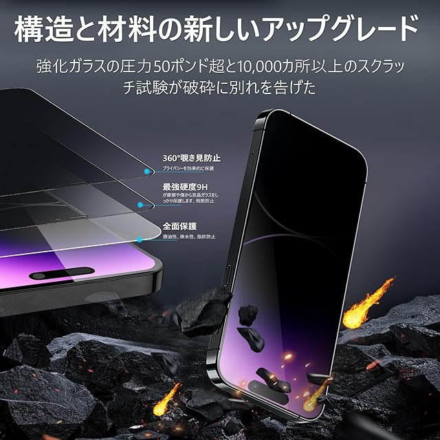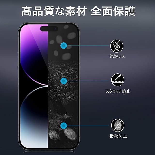 商品名:【360度 / 2枚セット】 iPhone14 Pro max ガラスフィルム 覗き見防止 360 アイフォン14プロマックス 保護フィルム 360° 全方向 覗き見 いPhone14Pro max フィルム 上下左右 iPhone 14Promax 用 覗き見防止フィルム 画面保護 覗き見防止フィルター 【 iPhone14Pro max カメラフィルム 付き 】