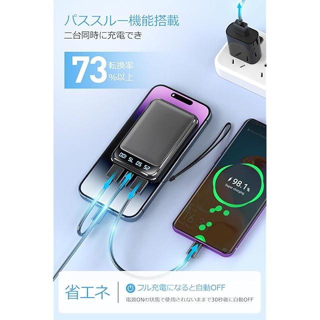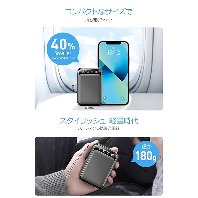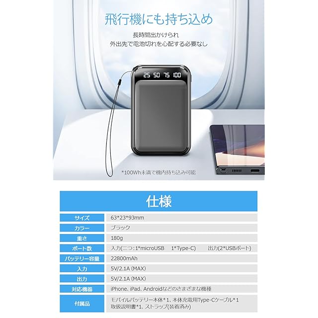 【多重保護機能 機内持ち込み可能】高性能ICチップと安全装置が内蔵され、モバイルバッテリーが過負荷・過充電・過放電・過電流・過電圧・ショートの際に、自動的に充電を停止するので、安心してお使いいただけます。飛行機に持ち込むことができて、出張中でも旅行中でも気軽に使用できます。ストラップ付きで持ち運びに便利、飛行機移動することが多い方にもおすすめです。